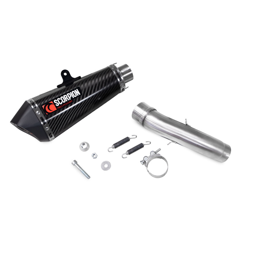 - leichter Scorpion Enddämpfer mit herausnehmbarem dB-Killer aus in konischer Form wird direkt auf den Serienkrümmer montiert