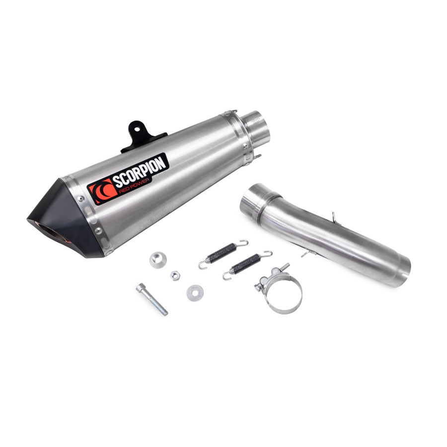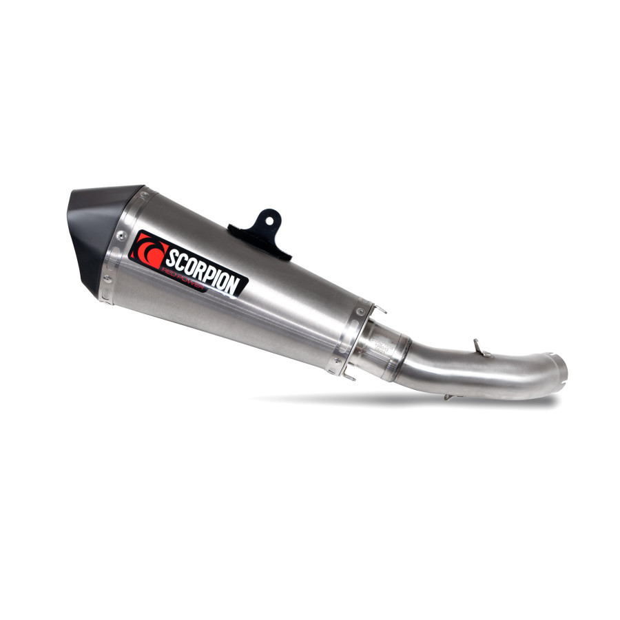 - leichter Scorpion Enddämpfer mit herausnehmbarem dB-Killer aus in konischer Form wird direkt auf den Serienkrümmer montiert